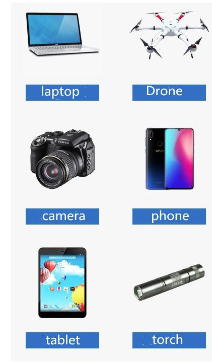tablet PC, laptop, small printer, some kinds lanterns, fish tank heater, photographic,